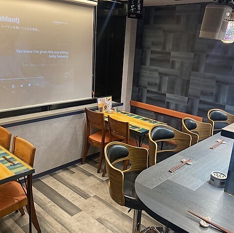 調理風景を間近に感じられるカウンター席は、お食事だけでなくお店の雰囲気を存分に楽しめる特等席です。L字型の設計なので、数名様でのご利用でも会話が弾みます♪また、店内にはプロジェクターを完備しており、イベント開催時にも人気のお席となっております。スタッフとの距離も近く、アットホームな時間をご提供♪