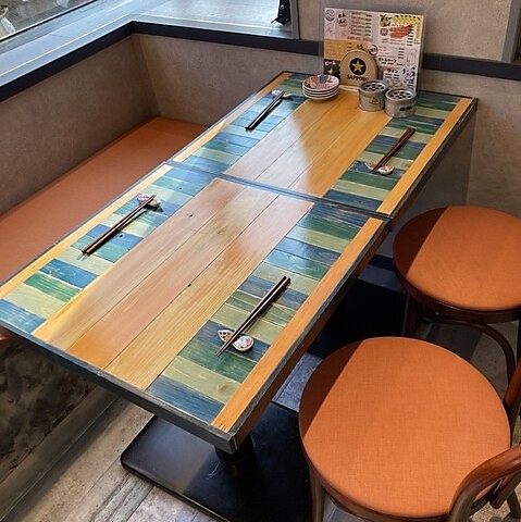 グループ利用に大変便利なテーブル席です。人数に合わせてテーブルを繋げることができ、最大12名様までの宴会に対応可能です。アットホームな雰囲気の中で、足を伸ばしてゆったりとお寛ぎいただけます。レイアウト等、お気軽にご相談ください♪
