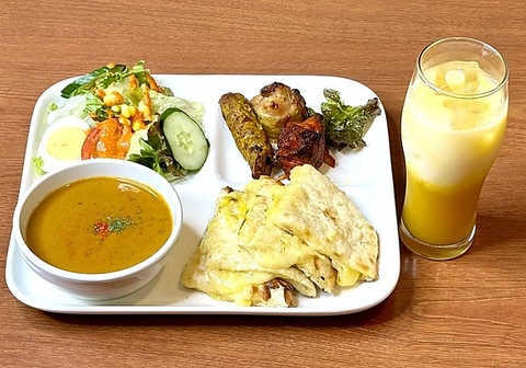 ハーフカレー2種とお好きなハーフナンやタンドール料理、ソフトドリンクがついたちょっとずついろんな種類を食べたい方にオススメなよくばりなセットです【提供される期間が限られます・無い時期もあります】