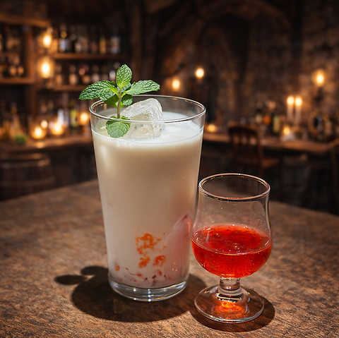 一口飲めばドラゴンのブレスを吐くことが出来る魔法のカクテル。後からくるピリピリした刺激がたまらない!!ただし、辛さが苦手な方は飲まないで下さい!(アルコールの強さ:★★★☆☆/辛さ:!!!)