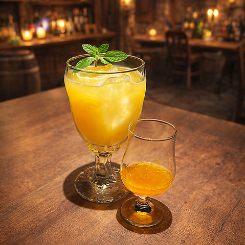 オレンジジュースに、国産柑橘(温州みかん+夏みかん)の果肉入りシロップを別添えした、こだわりの一杯。 お好みのタイミングで追いがけして、香りと甘みの変化を楽しめます。氷は氷屋の氷を使用。