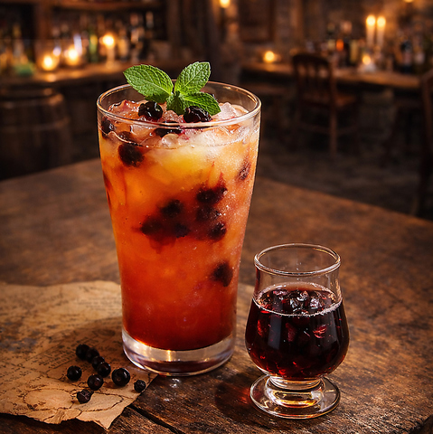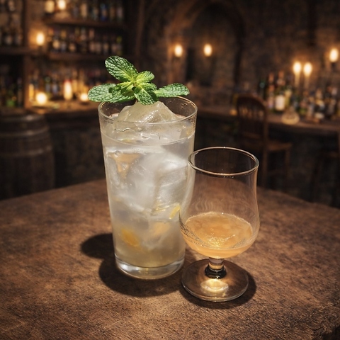 異世界でエルフが生み出したとされる最古のカクテルを再現。ガツンとくる味とほのかな甘み、木の香りを楽しむ事が出来るカクテルです。(アルコールの強さ:★★★★★)