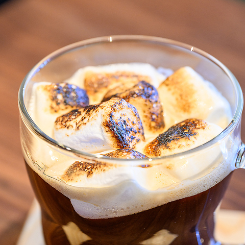 香り高いコーヒーに、ふんわりとしたマシュマロを浮かべた、やさしい甘さの一杯。溶けていくマシュマロがコーヒーにコクを加え、まろやかな味わいに変化します。食後の一杯や、ゆったり過ごしたい時間におすすめです。