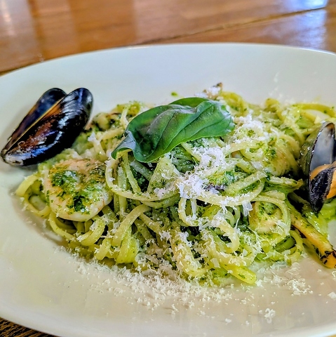 生パスタ!新発売した、「シーフードジェノベーゼスパゲティ」1380円(ランチセット1780円