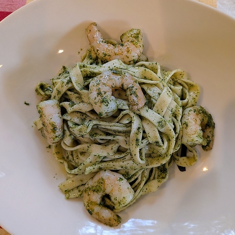 生パスタに、食べ応えのある、大きなイカとエビを贅沢にトッピングし、バルメザンチーズを豪快に振りかけた1品。麺に水分が多く含まれてるため、10分以内でのお召し上がりをお勧めしております。+400円でサイドメニュー1品とソフトドリンクが1つつきます。