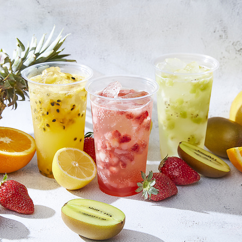 台湾風フルーツナタデココソーダ。フルーツの甘みとナタデココのぷるぷる食感、爽やかな炭酸が絶妙にマッチ。ランチや生パスタ、焼きたてピザと一緒に楽しめるドリンクとして人気。暑い日や食後のリフレッシュにもおすすめの一杯です。レモン、ストロベリー、パイナップル、キウイ、パッションフルーツ等7種類有り