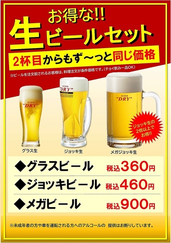 アサヒスーパードライ生ビールが料理注文でお得価格!