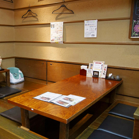 3名掛けと6名掛けの2卓をご用意◎足を伸ばしてゆったり過ごせる掘りごたつ席。温もりある和の雰囲気で、特別な日のお食事にもおすすめです。