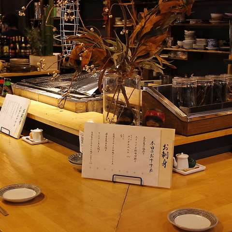 囲炉裏を囲むカウンターでライブ感をお楽しみください。