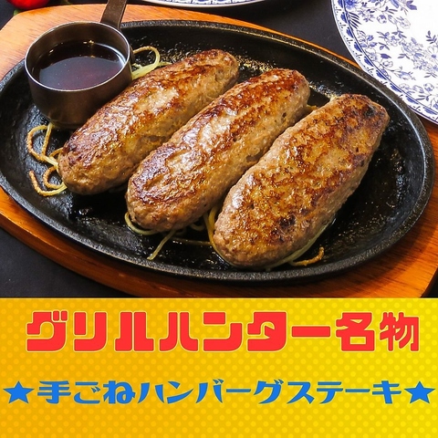 グリルハンターのハンバーグと言えばコレ!!ボリューム満点の手ごねハンバーグをい楽しみ下さい★