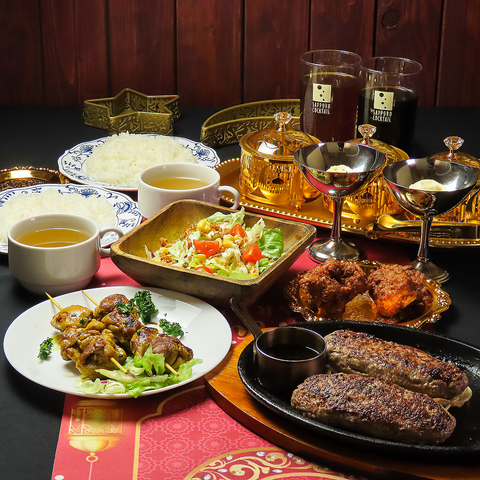 味はもちろん◎!満足感◎!当店自慢のデラックスコースです。ドリンク・デザート付き★[Deluxe Hunter Course★~Enhance your meal for an additional ¥500~ A hearty course featuring the award-winning special fried chicken & kebab! 8 dishes in total. Includes drink & dessert. ]