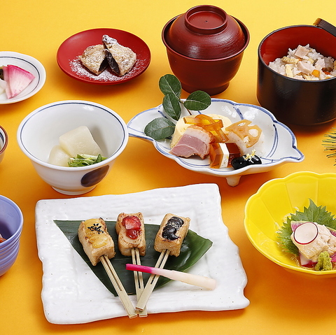 京都ならではの食材(四季折々の野菜、湯葉や麸や胡麻)の共演によって京料理に触れていただけます。目で見て楽しい、食べて美味しい!細やかな気遣い、サービスでお腹も心もご満足いただけるよう努めます。器や盛り付けの細部までもこだわったお料理で、お客様の大切な1日を華やかに彩ります。