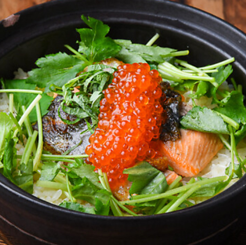 ご注文いただいてから丁寧に炊き上げる土鍋ご飯は、まさに至福の逸品!タコと生姜、天然ぶりと彩野菜、鮭といくらなど、種類豊富にご用意しています。目の前で開かれる炊きたての蓋から立ち上る湯気と香りは、食欲をそそる最高の演出。ふっくらと炊き上がったご飯と厳選素材のハーモニーを心ゆくまでお楽しみください。