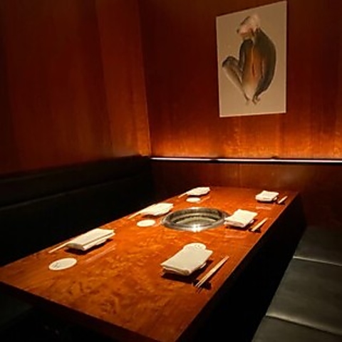 モダンで落ち着いた雰囲気の4名様向け完全個室です。大切なご友人やご家族とのお食事に最適で、周りを気にせずゆったりとお過ごしいただけます。プライベートな空間で、上質な焼肉をご堪能ください。