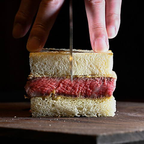 人気No,1のカツコースのスペシャリテとして提供しておりますレアカツサンドです。ご注文いただきましてからじっくり火入れを行います。 2人前よりご注文いただけます。 ※表示価格は1人前です。