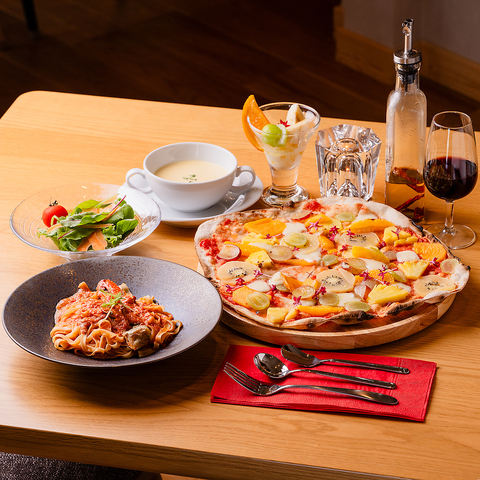 当店ではお客様に合わせて作るコースもご用意しております。北海道産春小麦使用のパスタや、イタリア産の粉をしたローマ風ピザ、北海道産男爵いもを使用した手作りニョッキなどが楽しめる全8品のボリューム満点のコースです。季節のフルーツを使用したデザートも付いています♪