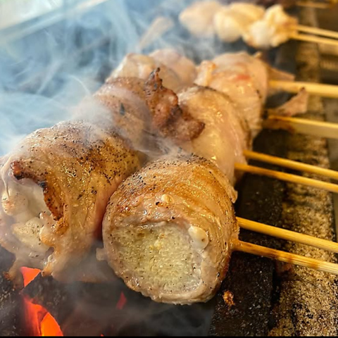 日替わりで様々な食材を巻いてご提供しております。いつ来ても新しい味わいを楽しめるのが人気となっております。 炭火でじっくりと焼き上げ、豚バラと食材の旨味を引き出しております。店主が心を込めて仕込んでいるので、その逸品をぜひご賞味あれ!