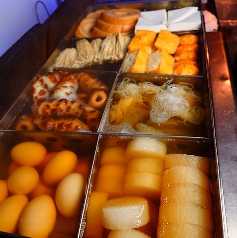 あっさり越後おでん、国産鶏のみを使用した丁寧な焼き鳥、厳選した地酒。当店オススメの「出汁割」は新潟県産コシヒカリ100%使用の日本酒におでんの出汁を入れた逸品です。