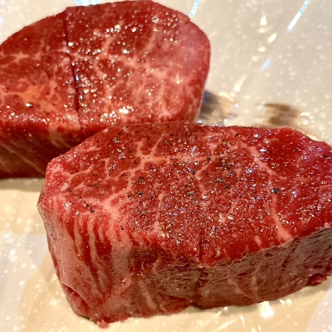このお肉は「ヒレ肉」と呼ばれる部位で、非常に柔らかく、脂肪の少ない赤身肉です。特に上質なヒレ肉で、風味が豊かで、口の中でとろけるような食感が楽しめます。当店のイチオシメニューとなってりますので、是非ご注文下さい!