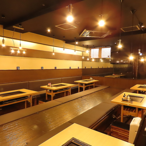 ご自身でもんじゃを焼いて楽しめる奥の座敷席(掘りごたつ)がございます。30名様前後の宴会の対応が可能です。また、25名様からフロア貸切も承っておりますので、会社の飲み会や同窓会など大人数でのご宴会に最適です。