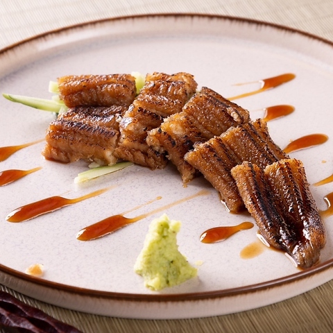 自家製の煮穴子を使用した自慢の一品です。柔らかな穴子が丁寧に焼かれ、特製のタレがかけられています。タレの甘みと穴子の旨味が絶妙に絡み合い、豊かな風味が楽しめます。盛り付けには、青じそやわさびが添えられ、見た目も美しい一皿です。日本酒との相性も抜群で、居酒屋の雰囲気を一層引き立てる贅沢なおつまみです