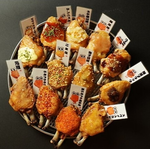独自の秘伝タレとスパイスで仕上げた当店こだわり手羽先!12種類の味が楽しめる元祖全むすめ盛はSNS映え◎
