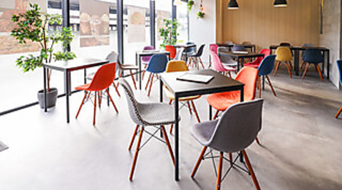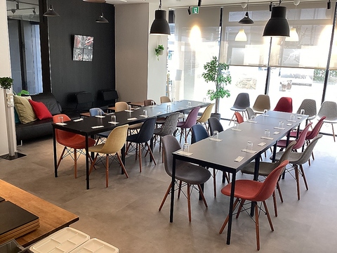 | テーブル | 17名様×30 | 光の差し込む明るい店内に、カラフルな座り心地の良いイスをご用意しております。 |