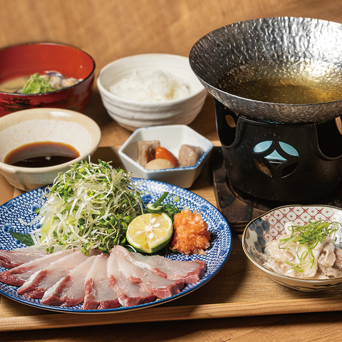 鮮度抜群のぶりをランチから贅沢にしゃぶしゃぶでお召し上がりいただけます。※定食にはおばんざいビュフェが含まれています。季節のおばんざいを追加でお楽しみください。