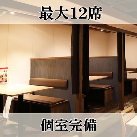 落ち着いた雰囲気の店内には、個室や半個室、お一人様でも気軽にご利用いただけるカウンター席などを完備。