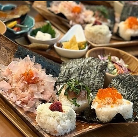 厳選した素材を使ったこだわりのおにぎりなどが楽しめるコースを各種ご用意しております。コース内容は、お食事メイン・飲みメインなど、お客様のご希望に合わせて変更しております。おにぎりの具材もお客様のお好みで!!どうぞお気軽にご相談くださいませ。