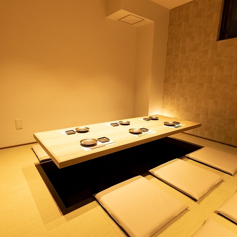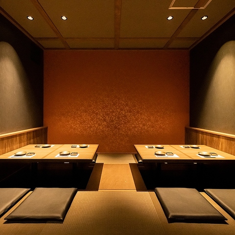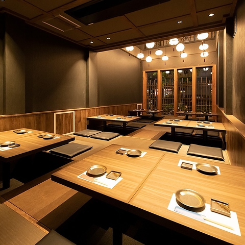 最大16名様の個室座席は豊洲エリアでも自慢の風味ある粋な空間でご宴会頂けます。12名様からご利用ができ、当店のコンセプトを充分に感じられる匠で大人なお時間をお過ごし下さいませ。テーブルサイズも広めに設けており料理を多数並べても余裕のあるスペースでお食事をご堪能◎