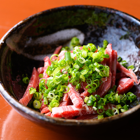 上品な脂を持つ上ロースと、肉の味が素晴らしいもも肉を組み合わせてユッケにしています。脂の融点が低い馬肉ユッケは、口どけの素晴らしい一品です。※生の馬肉は鮮度が命なので、納得いく品質の物が届かなかった場合、残念ながらお出しできない場合がございます。