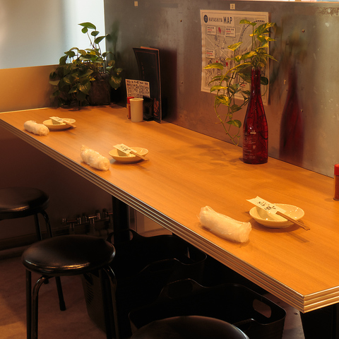 落ち着いた雰囲気のカウンター席はおひとりさまやデートでのご利用もおすすめです♪肩を並べて一杯いかがでしょう!