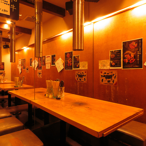 広々とした空間は、お子様連れや飲み会など各種お集まりに最適!2階貸切は、最大28名様まで承ります。テーブル席を繋げて、最大16名様まで対応可能◎団体利用もおまかせあれ。美味しい和牛をガッツリ食べながら、会話に華を咲かせてください!
