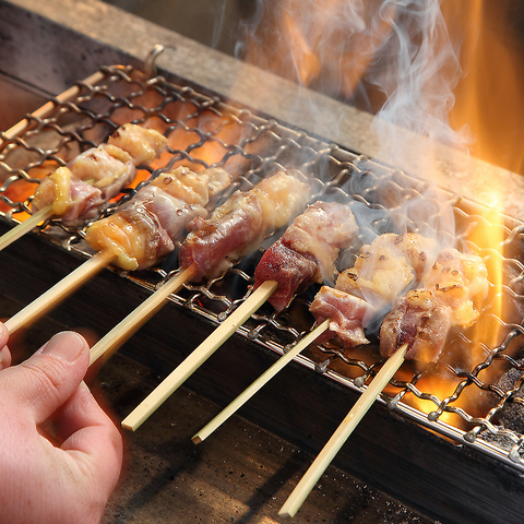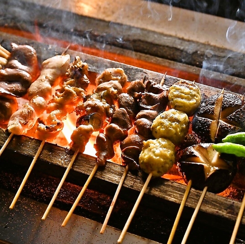 当店のウリは炭火で焼き上げた絶品の焼き鳥!1本110円~ご用意いたしました!中でもセセリ・つくねが評判!