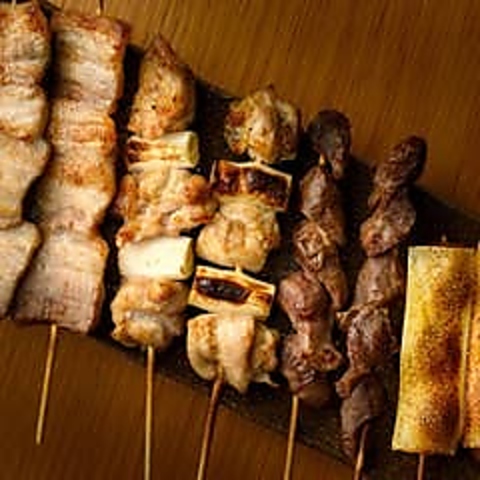焼鳥は種類豊富にご用意しております。定番のとり皮やねぎ間から雲仙ハム串や卵黄つくねなどの贅沢な串までお楽しみいただけます。