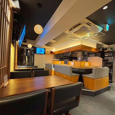 友人同士で飲むなら広々テーブル席がおススメ。大人数でも大歓迎、お気軽にお越しください。