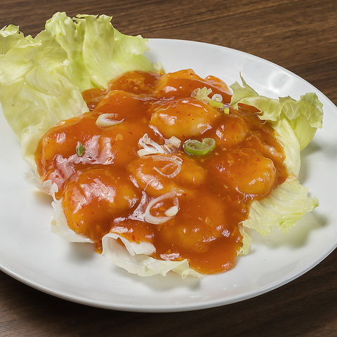 当店自慢の「エビチリ」は、プリプリのエビを特製の甘辛ソースで仕上げた絶品の一品です。ピリッとした辛さとまろやかな甘さが調和し、ご飯が進む美味しさが魅力。新鮮なエビの食感とふんわりとした香り高いソースが口いっぱいに広がります♪