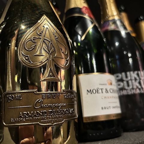 飲み放題プランもございます!料金は2h4400円となりましてソフトドリンク+アルコール類(シャンパン、ショット類、ビールを除く)です!プラス500円でビールの飲み放題も可能になります!