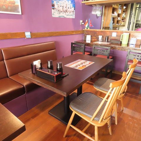店内は紫色の壁や温かみのある照明で、落ち着いた雰囲気の中お過ごし頂ける空間をご用意しております。ゆったりと過ごせる店内で本場のネパール料理やインド料理をご賞味いただけます。