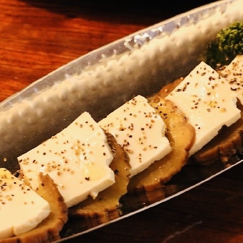 鮮度の良いマグロをじっくり熟成させて仕上げた、特製の マグロ生ハム。しっとりとした食感と、凝縮された旨みが特徴です。ここでしか味わえない贅沢な鮪の生ハム、ワインや日本酒のお供にぜひ。