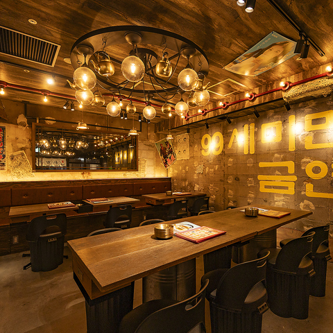 韓国風のお洒落な店内…!女子会にもぴったりです♪また、飲み放題付きのコースも充実しているため、各種宴会にもオススメです!ニューオープンの清潔感のある綺麗な店内で、美味しいお酒とお料理をごゆっくりご堪能ください!