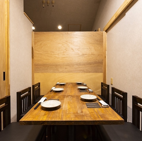 4名様~20名様用の個室は、靴を脱いでゆったりくつろげるプライベート空間。木の温もりを感じる落ち着いた雰囲気で、友人との食事やデート、接待にも最適です。周囲を気にせず会話が楽しめるので、特別なひとときにぴったりの個室です。