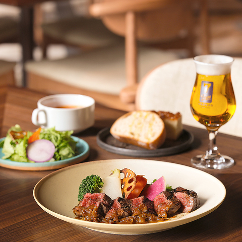 お肉がメインの贅沢ステーキランチ5種類、人気のパスタランチ8種類、伝統京野菜や京都産の野菜をたっぷり使ったサラダプレート3種類、食べ応え抜群のバーガーセット3種類、合計19種類のランチセットをご用意。お好みのランチセットをご堪能ください♪セットのパンは食べ放題なので、こだわりのソース迄余すところなく、ゆったりお楽しみ下さい☆