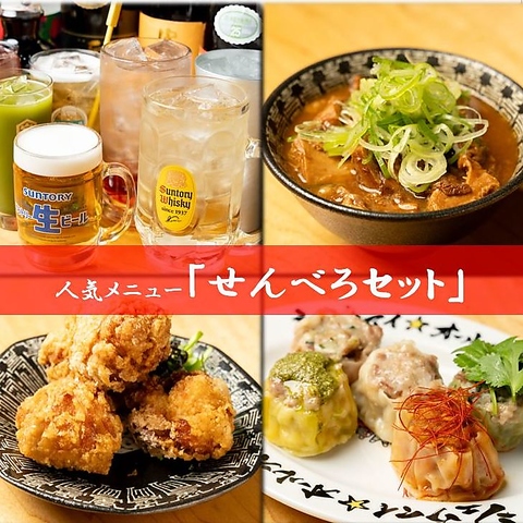 オープンから18時まで限定でかなりお得なせんべろセットご用意あり!お好きなドリンク1杯+牛もつ肉豆腐+肉シュウマイ3個or爆汁唐揚げ2個 がセットで1000円!