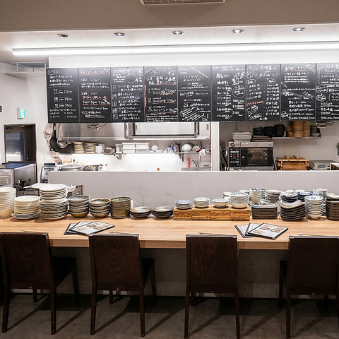 清潔感のあるおしゃれな店内は気軽に足を運べるオープンキッチン…ライブ感溢れる調理風景も楽しめ、テーブルのコネクトも可能ですので、少人数から団体様(最大35名様)まで大歓迎!仕事帰りの一杯やデート・親しい方との集まりにも是非ご利用下さい!※貸切対応はAM11:00~PM23:00まで(2時間制)