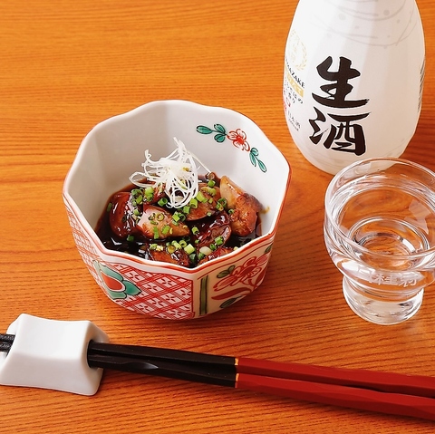 博多地鶏の新鮮な肝を使用 肝を焼いてから、甘辛いタレで煮詰めた肝煮は日本酒との相性抜群です