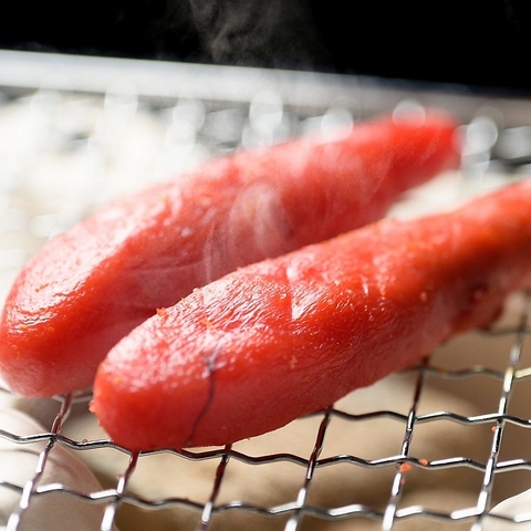 七輪で炙り焼きを楽しむメニューもご用意。明太子を贅沢に炙っていただくメニューです!お好みの炙り加減で食べられるので、レアな食感からしっかり炙った明太子まで、変化も楽しめる人気のおつまみメニューです!他にも活タコやエイヒレなども!