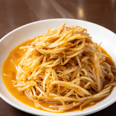当店大人気でパクパク食べれちゃうボリューム満点の辛もやし★辛さも選べます!おつまみとしても大好評で、ビールやお酒との相性が抜群です。他にも種類豊富なおつまみが揃い、どれも手軽に楽しめる一品ばかり。みんなでシェアしながら、ワイワイ楽しめるメニューが満載。食事や飲み会にぴったりの、みんなに愛される理由があります!