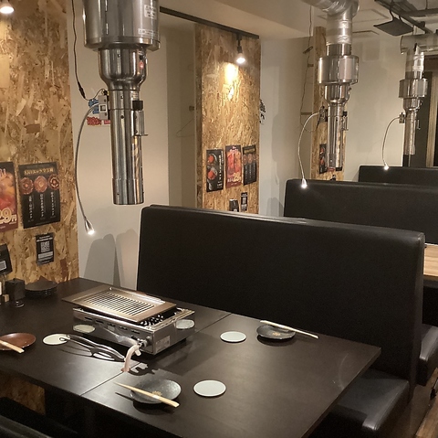 【:テーブル席2名~ご利用可能】ご宴会やデートに!何といっても焼肉は換気設備抜群!向かい合ってお食事して頂いても、煙が充満しないためのダクトが間にございますので安心安全です☆活気あふれる店内で焼肉をお楽しみください♪